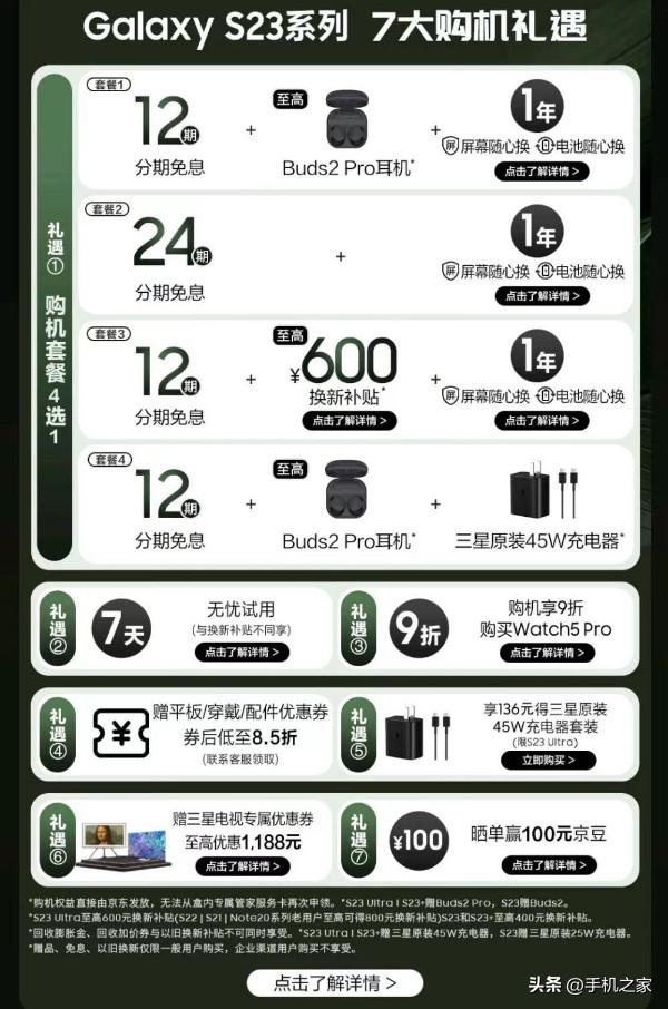 當(dāng)然,在京東換新機(jī),以舊換新是基本操作,但三星Galaxy S23系列以舊換新補(bǔ)貼最高可得600元,還可與免息、“1年屏幕隨心換+1年電池隨心換”疊加贈(zèng)送,全方位省錢。