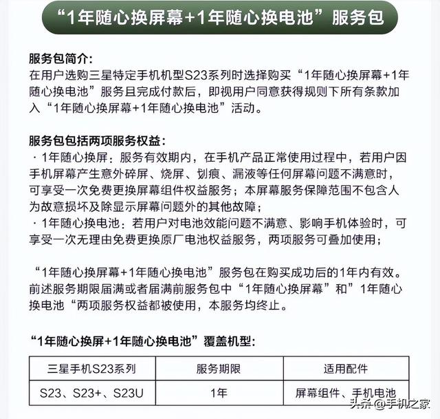 對(duì)大多數(shù)人來(lái)說(shuō),看直播、拍視頻,再加上日常工作與社交,手機(jī)幾乎時(shí)刻在線,在使用過(guò)程中磕碰是常事,因此,大多數(shù)人換新機(jī),第一時(shí)間要給手機(jī)貼上鋼化膜,套上手機(jī)殼,但難免還是會(huì)遇到碎屏的情況,維修要花不少錢。為了省去用戶這方面的煩惱,京東針對(duì)三星Galaxy S23系列限時(shí)推出“1年屏幕隨心換+1年電池隨心換”服務(wù)保障,用戶在使用手機(jī)過(guò)程中,出現(xiàn)意外碎屏、燒屏、劃痕、漏液等問(wèn)題時(shí),可享受一次免費(fèi)換屏幕組件權(quán)益服務(wù);如果一年內(nèi)電池出現(xiàn)問(wèn)題,影響日常使用,還可享受一次無(wú)理由免費(fèi)更換原廠電池權(quán)益服務(wù),兩項(xiàng)服務(wù)可以疊加使用,有效期一年,免去后顧之憂。