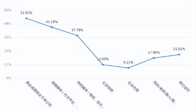 本次評選結(jié)果,行業(yè)人士已經(jīng)對心目中最佳的戶外廣告公司所具備的因素已經(jīng)有了清晰的定位。對此,針對人們對所選擇的公司的了解渠道也做了評選,“就業(yè)或曾就業(yè)于該公司”成為了主要來源,數(shù)據(jù)占比53.05%。另外網(wǎng)絡(luò)媒體(社交平臺、網(wǎng)頁廣告等)、傳統(tǒng)媒體(社交平臺、網(wǎng)頁廣告等)分別位于第二和第三。因此可以看出,大型的戶外公司口碑是不錯的。