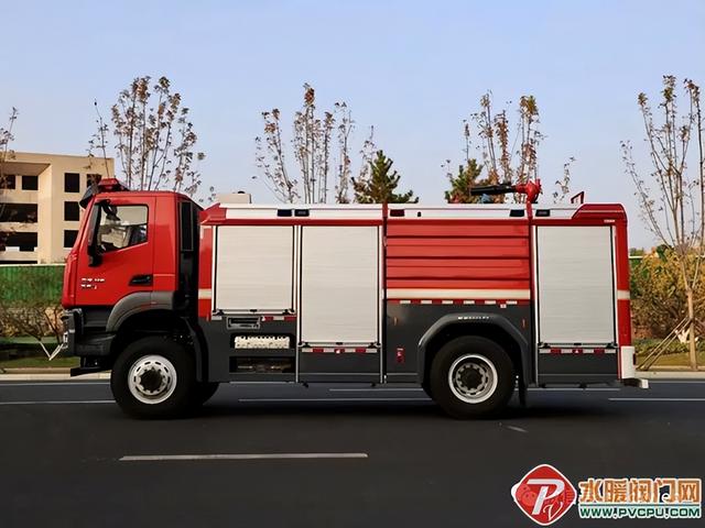 山東煙臺采購的6噸水罐消防車采用國六排放的上菲紅Cursor9柴油發(fā)動機,最大輸出功率360馬力,搭配法士特12擋手動變速箱。駕駛室為單排杰虎H6窄體平頂,核載兩人。