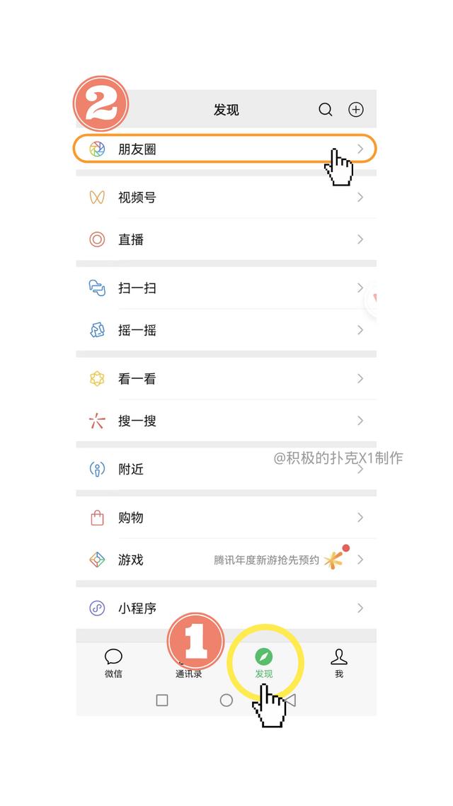 第一步是點(diǎn)擊聊天頁(yè)面最下方的“發(fā)現(xiàn)”,變綠后就是進(jìn)入“發(fā)現(xiàn)”界面