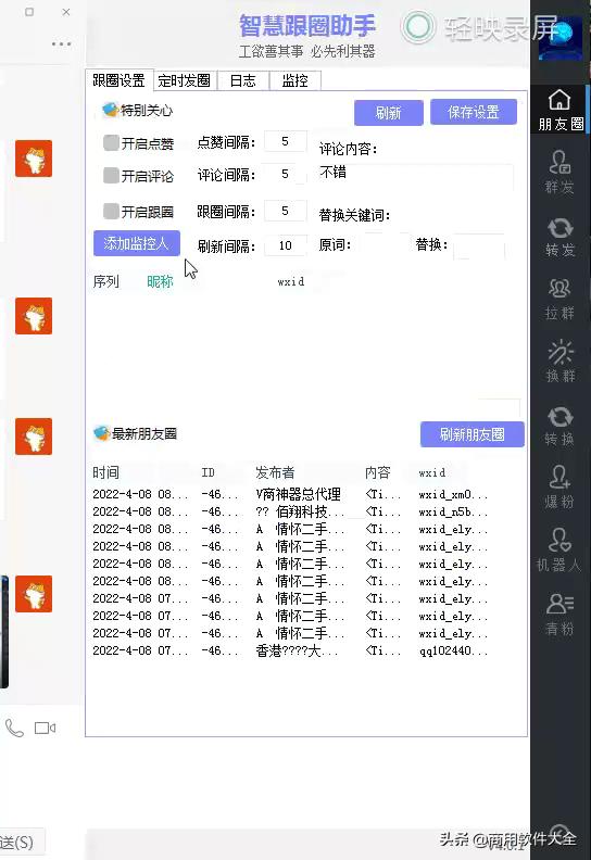 智慧跟圈的優(yōu)點(diǎn)是可以定時(shí)發(fā)朋友圈,跟發(fā)朋友圈,還帶有消息群發(fā)等一些功能。