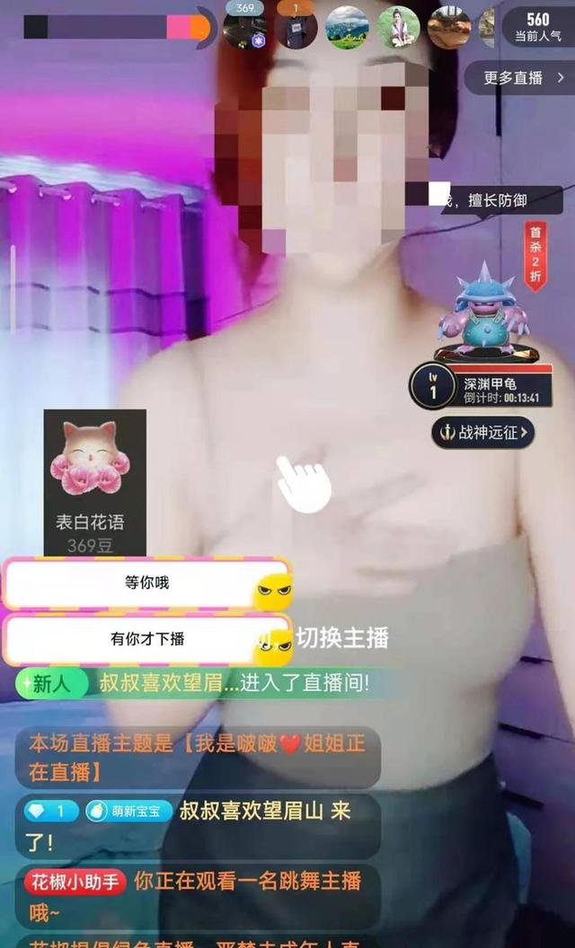 “白天在涉黃邊緣瘋狂試探,后半夜肆無忌憚?!辈簧僖轮┞兜呐鞑ブ辈?,不僅向粉絲重復(fù)的曖昧話語,還會做些具有挑逗性的動作,下面的評論區(qū)留言也是十分露骨,性暗示十足。相比抖音、快手、視頻號,花椒直播堪稱“擦邊球”行為重災(zāi)區(qū)。而每位主播都在使出渾身解數(shù),也只為博得觀眾們的停留打賞。