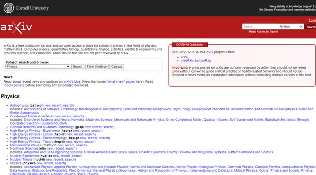 適用檢索文獻類型:是一個收集物理學、數(shù)學、計算機科學、生物學與數(shù)理經(jīng)濟學的論文預印本的網(wǎng)站。