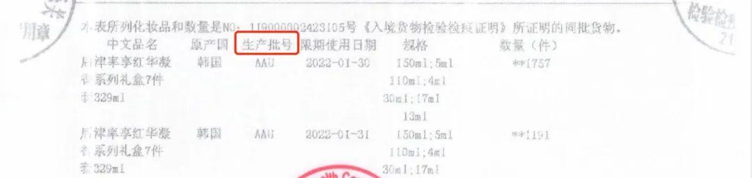 其次,戚薇工作室公布的這兩份證據(jù),還缺乏另一個關(guān)鍵信息“生產(chǎn)批號”。每一批次產(chǎn)品在生產(chǎn)過程中,都會有一個唯一的“批次號”產(chǎn)生,會印刷在瓶身上,在進口報關(guān)時,在產(chǎn)品詳情頁中會有詳細記錄。