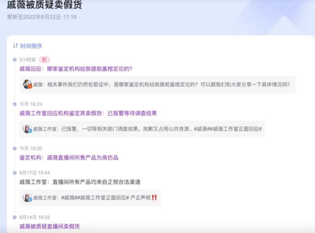 戚薇被質(zhì)疑賣假貨事件進程圖
