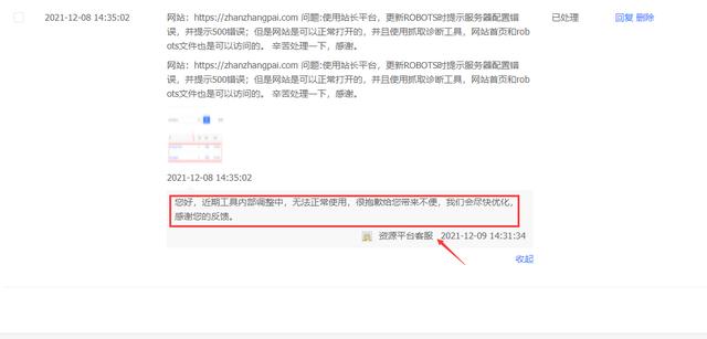 3、此時站長派就對此問題提交到了反饋中心,隔天接到的反饋則是: