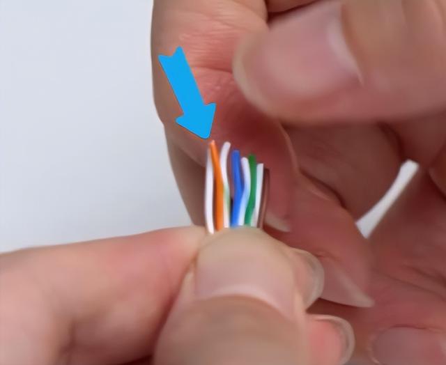 首先需要把網(wǎng)線斷掉的兩頭分別剝?nèi)ネ馄?,再把里面?根芯線分開并捋直,之后根據(jù)T568B國際標準接法,按照橙白、橙、綠白、藍、藍白、綠、棕白、棕進行排序。