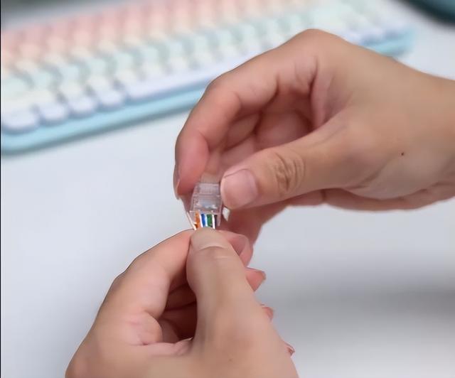 芯線放進去之后,再用網(wǎng)線鉗子壓緊,當聽到“咔”的一聲,就說明接好了。兩頭都接好水晶頭后,只需要再用一個網(wǎng)線對接頭把兩端連接起來,就可以了。