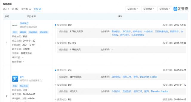 企查查信息也顯示,騰訊投資過(guò)的上千家公司中,目前已經(jīng)至少有64家企業(yè)通過(guò)了IPO,成為上市公司。