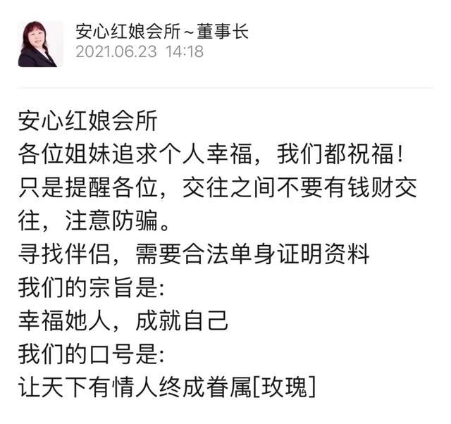 在征得小馮阿姨同意后,龔芳和客戶說起自己做媒的想法,并把小馮阿姨的經(jīng)歷一一說給客戶聽。客戶聯(lián)系親戚后,回答也很干脆:愿意,可以安排見面。