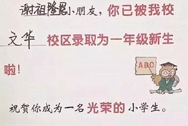 再往后還有像父姓+母姓、為復(fù)姓等等諸多取名字方式,不過中國這么多人,總有經(jīng)常去給孩子取名字出乎意料的情況,就像下面這個小學(xué)生,名字就因為超級簡單而走紅。