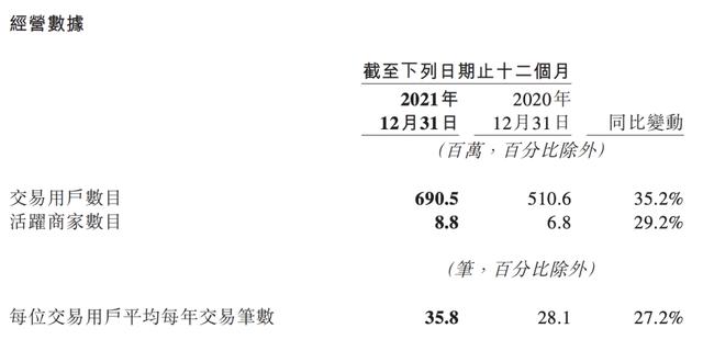 2021年,美團(tuán)不僅用戶數(shù)大增1.8億,每位交易用戶年交易筆數(shù)也大增27.2%,新增商戶200萬。