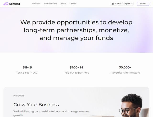 Admitad是一家全球IT公司,開(kāi)發(fā)和投資廣告和貨幣化技術(shù)、合作伙伴和金融服務(wù)、媒體購(gòu)買(mǎi)和智能購(gòu)物解決方案。通過(guò)幫助品牌和在線平臺(tái)增加銷(xiāo)售和吸引新客戶,并幫助受眾所有者將其貨幣化,與成千上萬(wàn)的廣告商合作并管理收入。提供發(fā)展長(zhǎng)期合作伙伴關(guān)系、貨幣化和管理您的資金的機(jī)會(huì)。