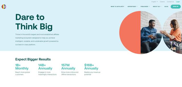 簡(jiǎn)稱CJ,國(guó)外老牌國(guó)外廣告聯(lián)盟,知名度很高,流量豐富,以銷(xiāo)售和引導(dǎo)注冊(cè)為主,旨在幫助您實(shí)現(xiàn)智能、可擴(kuò)展和可持續(xù)的增長(zhǎng)。繼續(xù)引領(lǐng)行業(yè),專(zhuān)注于聯(lián)屬網(wǎng)絡(luò)營(yíng)銷(xiāo)技術(shù)和服務(wù)。CJ Affiliate是推動(dòng)全球 3,800 多個(gè)全球品牌盈利增長(zhǎng)的首選平臺(tái),涵蓋零售、旅游、金融、網(wǎng)絡(luò)和家庭服務(wù)等所有垂直領(lǐng)域。