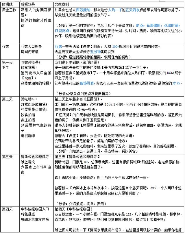 時(shí)間線(xiàn)攻略是最適合小白的腳本形式,按照旅行行程安排制作視頻腳本。
