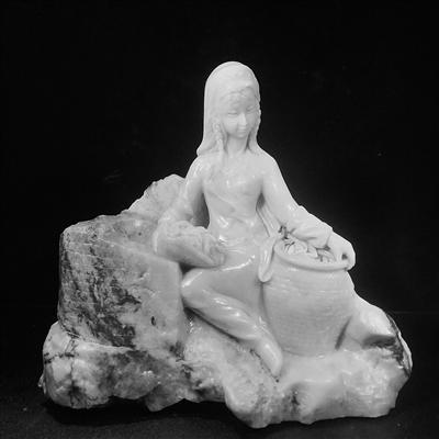 《花樣年華》石雕擺件,一位迎風(fēng)而坐的少女形象。她頭戴花環(huán),柔美端莊,深情注視著腳下怒放的鮮花。石雕采用傳統(tǒng)的鏤空技藝結(jié)合現(xiàn)代浮雕技藝,創(chuàng)作了少女“人面桃花相映紅”之意境。