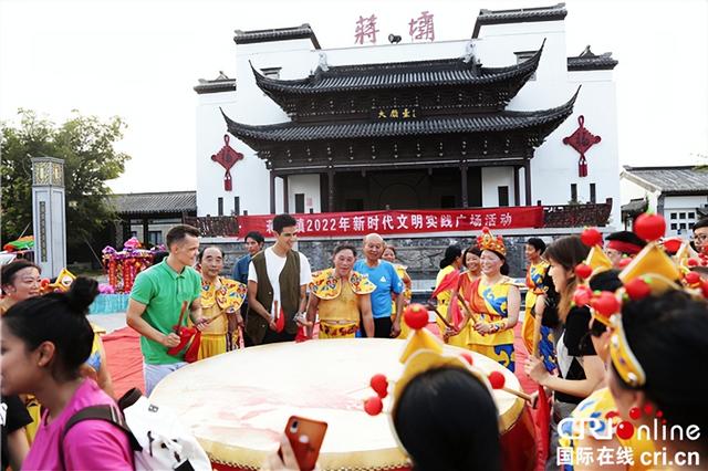 隨著漁鼓舞特有的節(jié)拍,外國網(wǎng)紅也紛紛加入跳舞的隊伍中,鼓聲飛揚,舞姿優(yōu)美,現(xiàn)場的歡樂氣氛頓時達到了高潮。