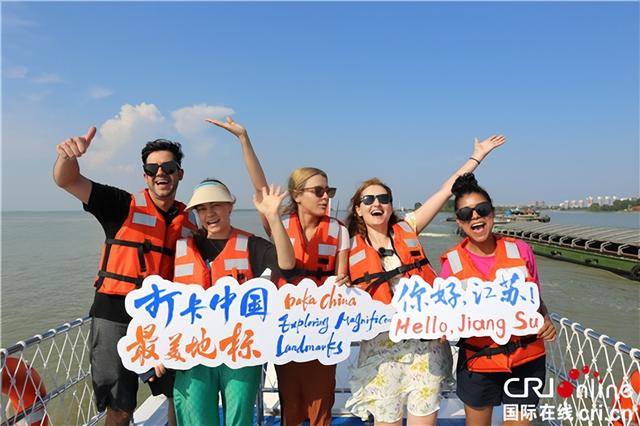 外國網(wǎng)紅乘船游覽洪澤湖時合影留念 攝影 楊宏澤