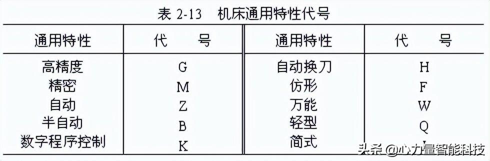 機(jī)床的特性代號(hào),包括通用特性和結(jié)構(gòu)特性,也用漢語拼音字母表示。當(dāng)某類機(jī)床,除有普通型式外,還有如表2-13中所列的各種通用特性時(shí),則應(yīng)在類別代號(hào)之后加上相應(yīng)的通用特性代號(hào),如cm6132型號(hào)中"m"表示"精密"之意,是精密普通車床。
