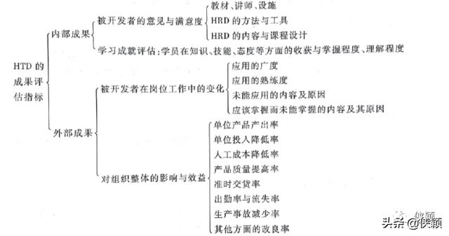 成果評(píng)估是判斷HRD對(duì)個(gè)人、崗位、部門與組織產(chǎn)生的實(shí)際效果,包括內(nèi)部成果和外部成果,