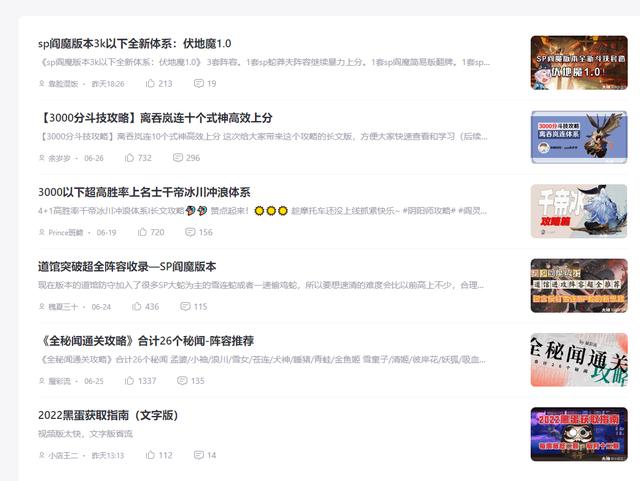 端游的攻略內(nèi)容豐富多彩,手游也不遑多讓。拿《陰陽師》來說吧,這款游戲無論是陣容搭配,還是式神培養(yǎng),都有很大的門道在里面,有時候研究下攻略,在斗技場上會有突飛猛進的進步。而在《陰陽師》圈子里,就有大量的長文干貨推薦,各種陣容搭配技巧讓人眼前一亮,十分值得玩家揣摩。