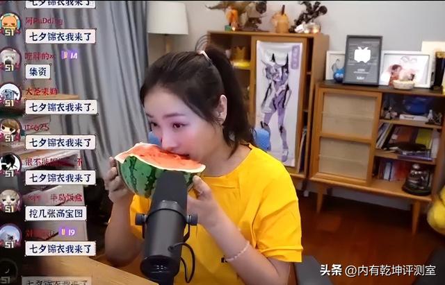 有意思的是,二人“吃瓜”的方法并不一樣,一向奔放的YJJ拿著勺子挖著吃,而一向文靜舒雅的女流反而抱著西瓜直接啃了起來,結合此前女流啃甘蔗的梗,有才的水友們也在彈幕中貢獻出了一句順口溜“前有甘蔗后有瓜,水友看了笑哈哈”。