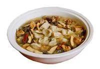 霍州饸饹面的高級版叫"桃花面"。它是將面下料湯,再加上適量的燒肉、肘子、臘麻、丸子,再加幾片波菜葉、韭菜段及蔥、蒜、姜、花椒等調(diào)味品,其味別致,其色迷人。"桃花面"的得名也有個(gè)故事,相傳1707年秋天,清代名戲曲家、傳世名劇《桃花扇》的作者、孔子六十四代傳人孔尚任來霍州,住知州孔興璉署中。一天孔尚任同孔興璉到陶唐峪拜謁堯祠,中午在堯祠用飯,吃的飯便是霍州歷來招待貴客的面??咨腥我怀裕X得非??煽?,便問這是誰做的飯。祠堂里的人告他說:是桃花姑娘做的。叫出桃花姑娘一看,年方二八,齒白唇紅,面如桃花??咨腥芜B連點(diǎn)頭,說桃花面好!桃花姑娘更好!知州一看他的表情,就連姑娘一起奉送去給孔大人做飯了,所以說要想贏得男人的心,首先要贏得他的胃啊。