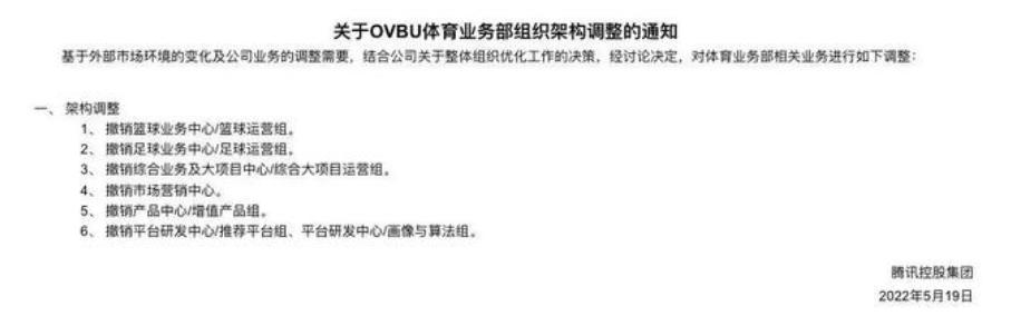 5月下旬,有媒體爆出騰訊體育將進(jìn)行組織調(diào)整,引發(fā)輿論嘩然。