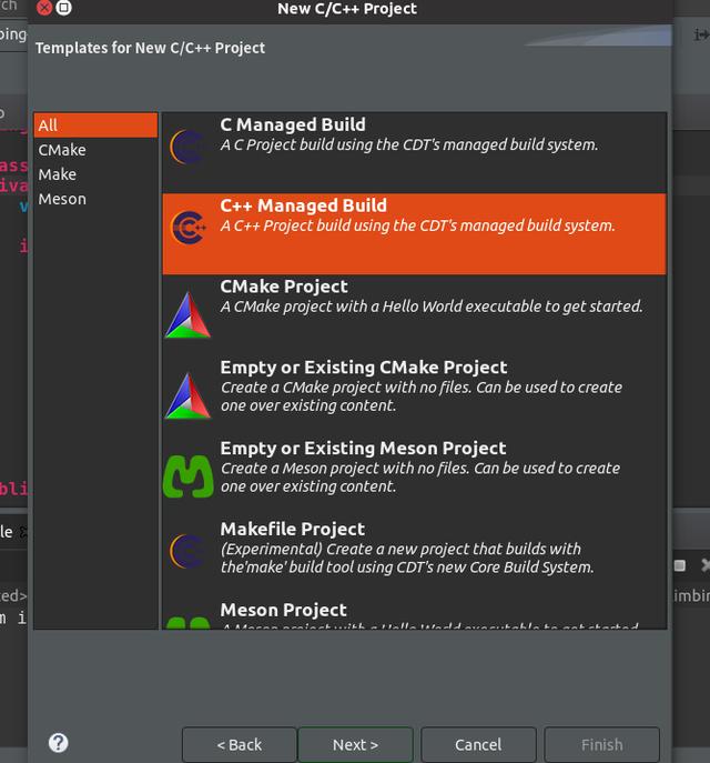 2、選擇C++ Managed Build,然后點擊下一步Next