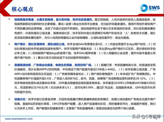 資料核心介紹:短視頻是確定趨勢: 1)從圖文到視頻,消費(fèi)和生產(chǎn)門檻降低,承載信息更豐富;4G流量提速降 費(fèi)是基礎(chǔ);2)算法推薦實(shí)現(xiàn)從人找信息到信息找人;3)短視頻貢獻(xiàn)移動互聯(lián)網(wǎng)時(shí)長主要增量, 正成為互聯(lián)網(wǎng)的基礎(chǔ)設(shè)施。