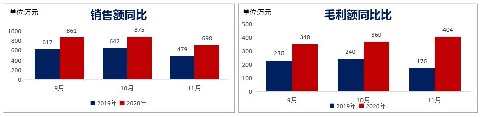 目前,該連鎖的自有品牌得到培育,實現(xiàn)單品突破。數(shù)據(jù)顯示,該連鎖2019年9月-11月到2020年9月-11月,其銷售同比增長140%,毛利額同比增長174%,整體毛利率提升9%。
