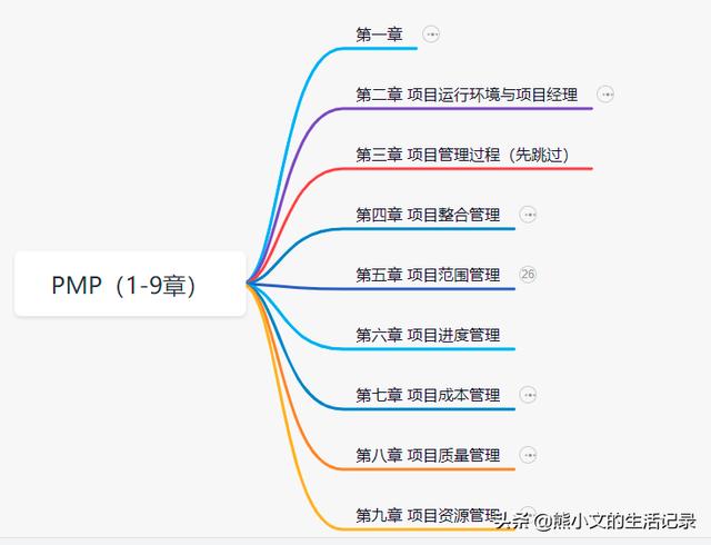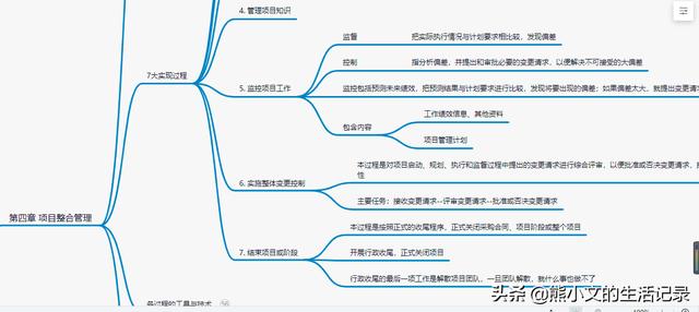 每看一章,我就將章節(jié)內(nèi)容整理成思維導(dǎo)圖。對(duì)于要概念性的知識(shí)點(diǎn),多看幾遍,形成記憶;但更多的是要靠理解。面對(duì)大量情景假設(shè)題,PMP備考死記硬背并不是聰明的做法。