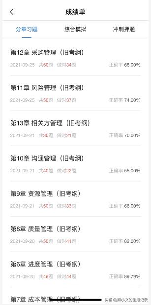 9月考前一周,真正緊張了起來(lái),每天刷一章管理圈的題,做了兩套仿真模擬題。9月份剛剛?cè)肼毿鹿?,每天下班回家已?jīng)八九點(diǎn),那幾天復(fù)習(xí)完總是已經(jīng)到深夜。這大概就是臨陣磨槍的代價(jià)。