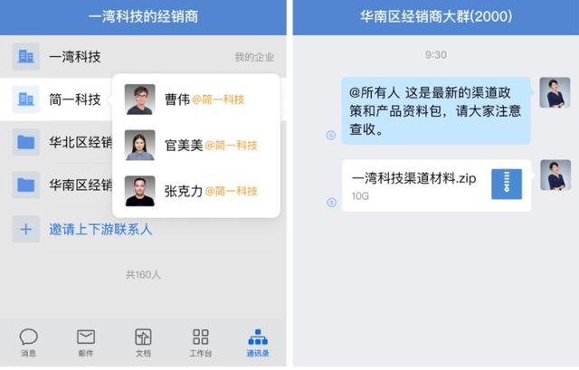 添加到通訊錄中后,上下游的員工可以一起開會、寫文檔,協(xié)作更高效。就連工作臺的應用也可以共享,更便捷地進行客戶管理。