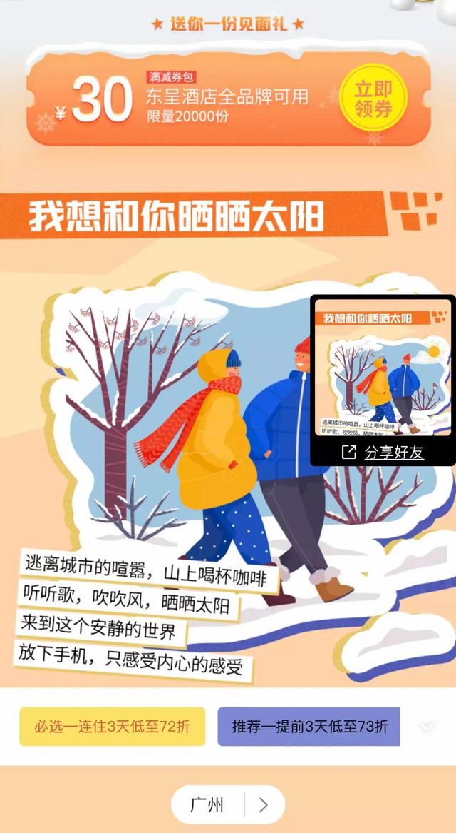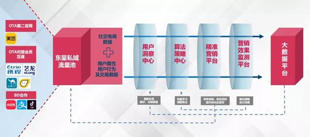 如A區(qū)的門店即將開業(yè),在門店開業(yè)之初,平臺便會通過新店專區(qū)、新店特惠等端口的設置,為門店收割第一波流量;除此以外,平臺還會通過用戶大數(shù)據(jù)篩選,找到在A區(qū)周邊曾入住過東呈旗下酒店的用戶,分析他所入住酒店的時間、頻次是否在周期內、消費價格是否合適、是否有階段性的消費需求等,根據(jù)數(shù)據(jù)推測對該客人進行活動推送,引導其選擇入住新開業(yè)門店,助力門店順利度過爬坡期。
