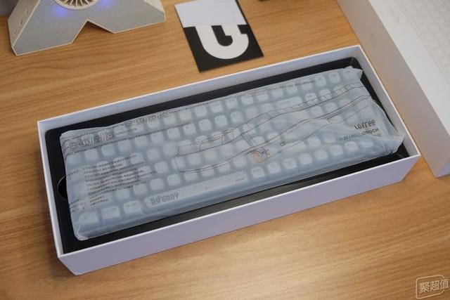 打開蓋子就看到了這次的主角,洛斐小翹50°灰藍(lán)牙鍵盤。洛斐的包裝細(xì)節(jié)做的很到位,鍵盤和配件的包裝袋上都有簡(jiǎn)單的示意圖,方便用戶更快的了解它們。