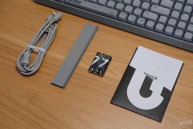 配件有說(shuō)明書、三節(jié)7號(hào)電池、type-C數(shù)據(jù)線和一個(gè)金屬托盤。數(shù)據(jù)線還有屏蔽環(huán),而且這個(gè)彎頭設(shè)計(jì)很不錯(cuò),可以直接給手機(jī)用,玩游戲時(shí)正好不擋手。有些遺憾的是沒(méi)有標(biāo)配帶一個(gè)拔鍵器,既然定位客制化那么配一個(gè)會(huì)好些吧。