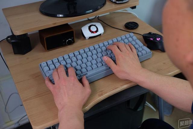 因?yàn)橐恍┰蛭页S玫碾娔X桌是一個(gè)簡(jiǎn)易的小桌子,小灰的尺寸真的要比之前我的104鍵要舒服很多,節(jié)省了很多空間,鼠標(biāo)的范圍會(huì)更大。連接模式有三種,2.4G和藍(lán)牙都是無(wú)線連接,第一次連接還是很好連接的,只需要按照說(shuō)明按組合鍵就能快速連接,下次啟動(dòng)電腦也能很快連接,而且使用上也很穩(wěn)定。