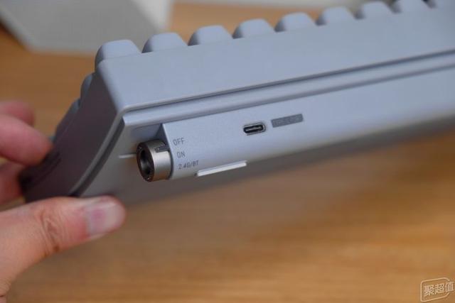 鍵盤支持三種連接模式,藍(lán)牙5.0、無(wú)線2.4G和有線連接,藍(lán)牙模式可以連接三臺(tái)設(shè)備,而且可以通過(guò)組合鍵快速切換,整體最多可以連接5臺(tái)設(shè)備。切換旋鈕在鍵盤右側(cè)底部位置,用起來(lái)還是很方便的。