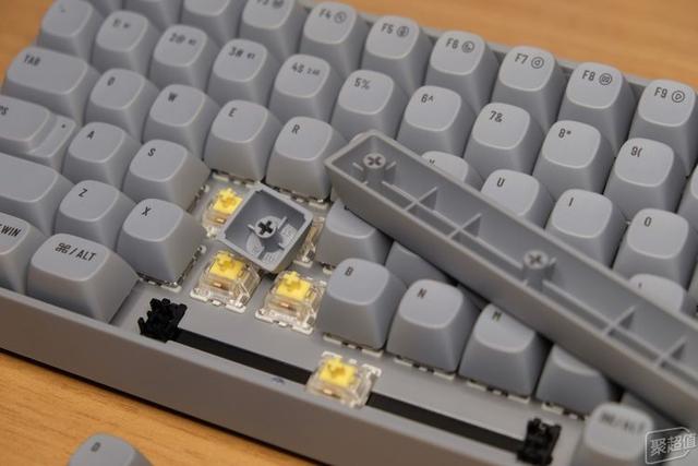 小灰的鍵帽是PBT材質(zhì),采用了熱升華工藝,更耐磨而且不易打油。