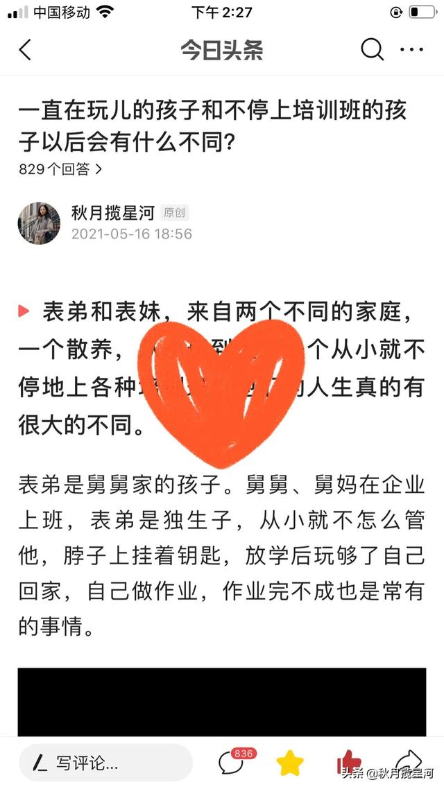 所以,有志于搞頭條創(chuàng)作的朋友,不妨試試每天寫一篇問答,就跟命題作文一樣,寫出自己的觀點(diǎn)和看法即可。
