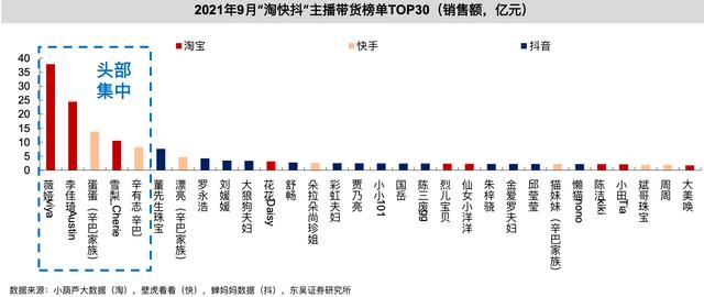 但中腰部主播的情況在淘寶并沒有預(yù)想的樂觀,據(jù)東吳證券的報告顯示,在2021年“淘快抖”主播帶貨榜單TOP30中,淘寶上榜9位主播,其中三位是大主播,在腰部主播陣營中,抖音占到大多數(shù),淘寶僅有6位。