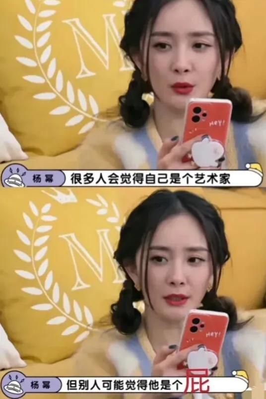 在節(jié)目中楊冪說了一句暗諷前夫的話,她是這樣說的:“很多人覺得自己是個(gè)藝術(shù)家,但別人覺得他是個(gè)屁”。