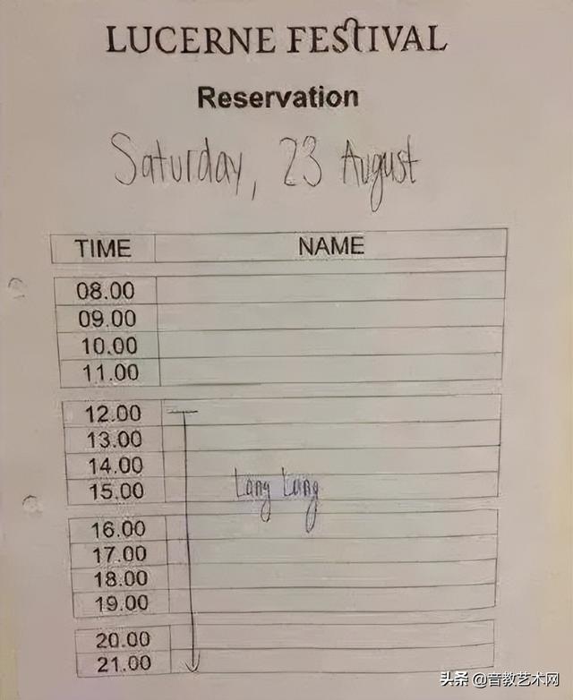 學(xué)習(xí)鋼琴的孩子們,一定知道郎朗小時候的練琴時間,就算是到了現(xiàn)在,郎朗每一天也要保證兩個小時的練琴時間。相信大家一定見過這張琴房使用申請表,郎朗在準(zhǔn)備音樂節(jié)期間,他的琴房預(yù)約卡是這樣的:從中午十二點(diǎn)到晚上九點(diǎn),都在琴房練琴;