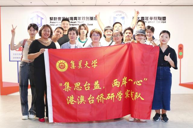 圖為“集思臺(tái)益,兩岸一心”港澳臺(tái)僑研學(xué)實(shí)踐隊(duì)與聚融壹家臺(tái)灣青年雙創(chuàng)基地負(fù)責(zé)人代表合影