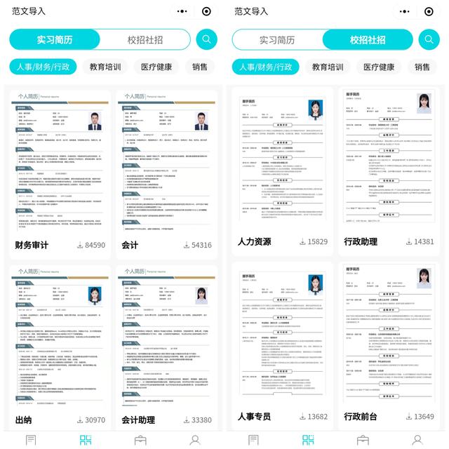 教育培訓、醫(yī)療健康等不同職業(yè)簡歷案例庫均可下載查看: