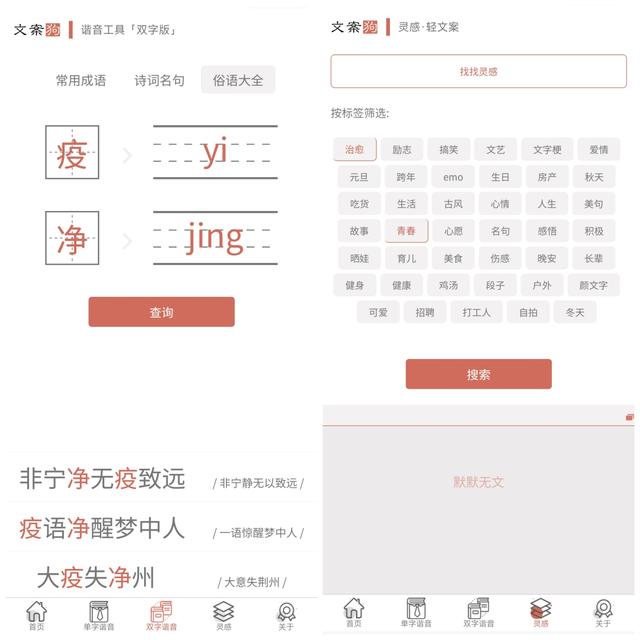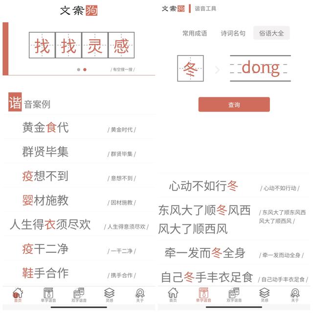 文案沒有靈感的小伙伴可以來看看這款小程序,說不定可以讓你靈感爆發(fā),包含各種常用成語、詩詞名句、俗語大全等諧音工具,輸入文字即可查詢;非常多諧音案例可供參考。