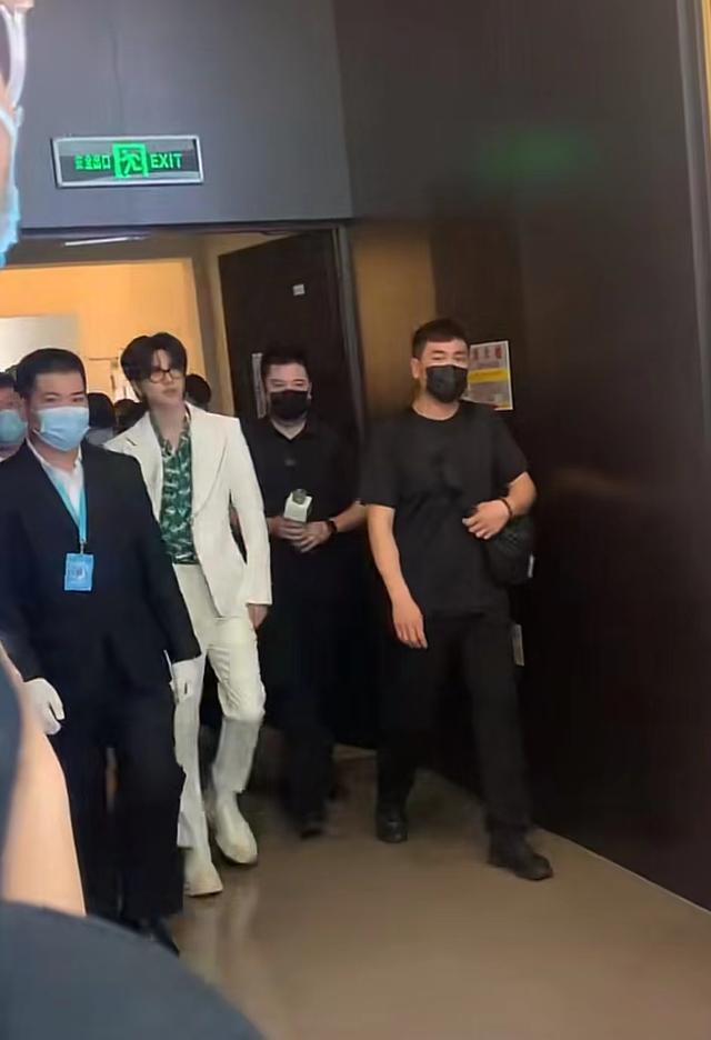 蔡徐坤邊走邊和大家揮手示意,臉上的表情沒有絲毫變化,看上去很是冷漠。當他走到拐角處時,身后的工作人員還在源源不斷地走出來,大約有20個人,包括保安、化妝師和助理等人。足以見得,蔡徐坤出行的陣仗很大。