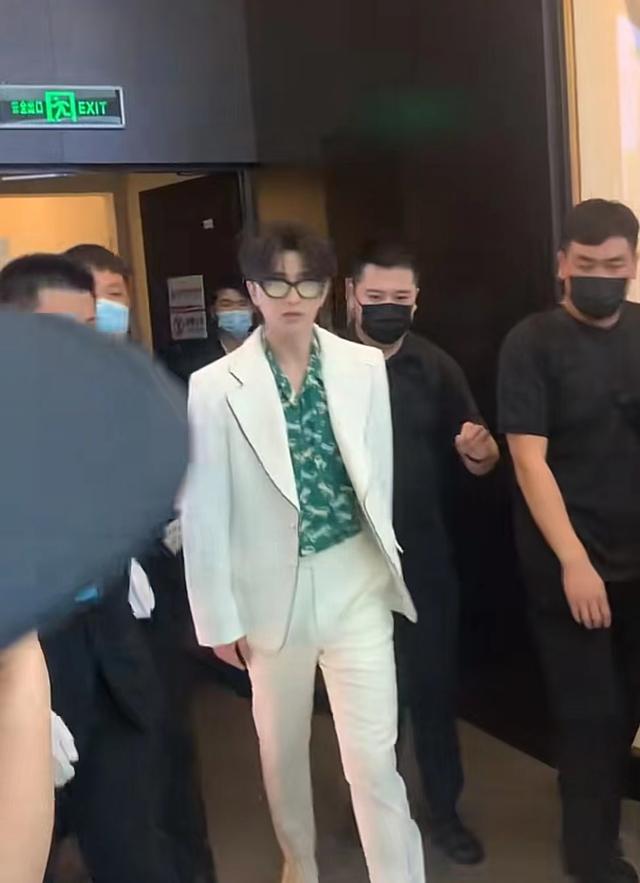 視頻中,蔡徐坤身穿白色西服套裝內(nèi)搭綠色印花襯衣,戴著墨鏡,打扮得很是時尚。
